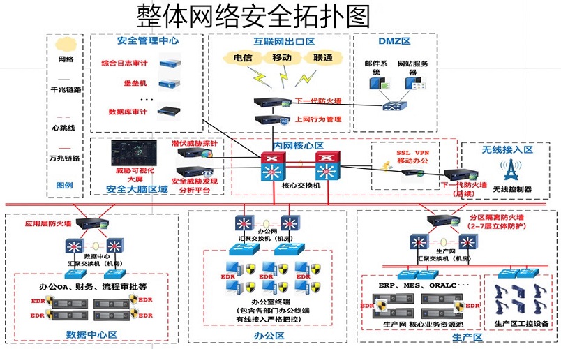內(nèi)網(wǎng)業(yè)務(wù):在業(yè)務(wù)區(qū)域及核心服務(wù)器部署安全感知平臺(態(tài)勢感知),發(fā)現(xiàn)業(yè)務(wù)風險。