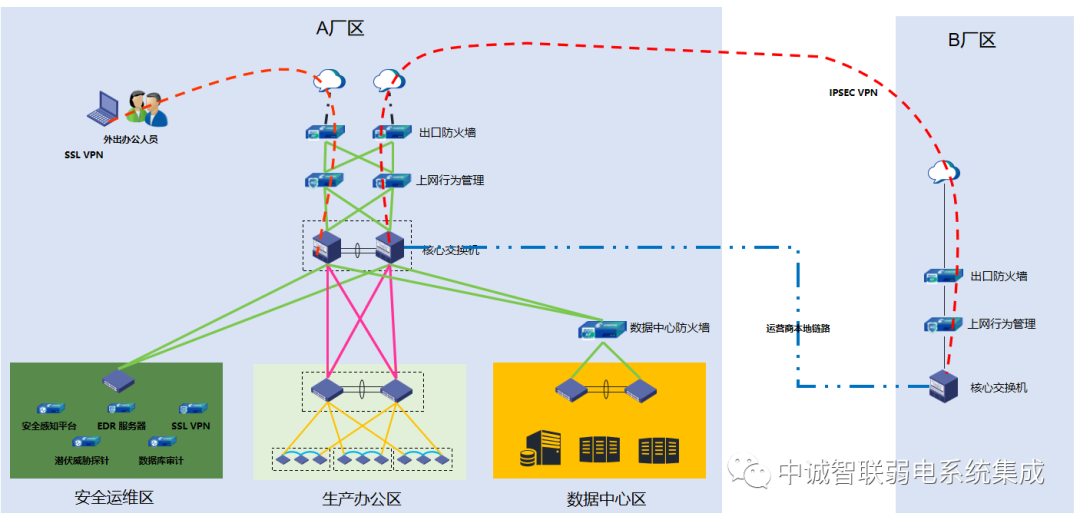 • 內(nèi)網(wǎng)安全性:針對重要區(qū)域前端重新新增或更換下一代應用層防火墻,管網(wǎng)系統(tǒng),提高內(nèi)網(wǎng)核心區(qū)域的安全問題。