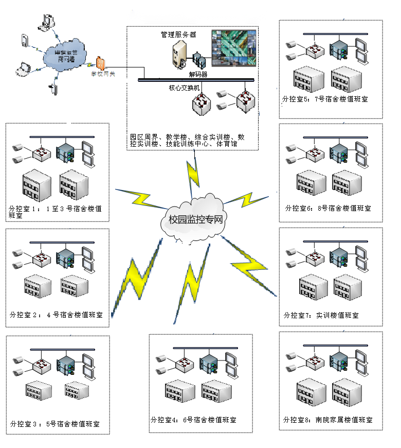 (二)分校區(qū)監(jiān)控系統(tǒng)總體架構(gòu)